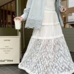 韓系蕾絲長裙 杏色/黑色